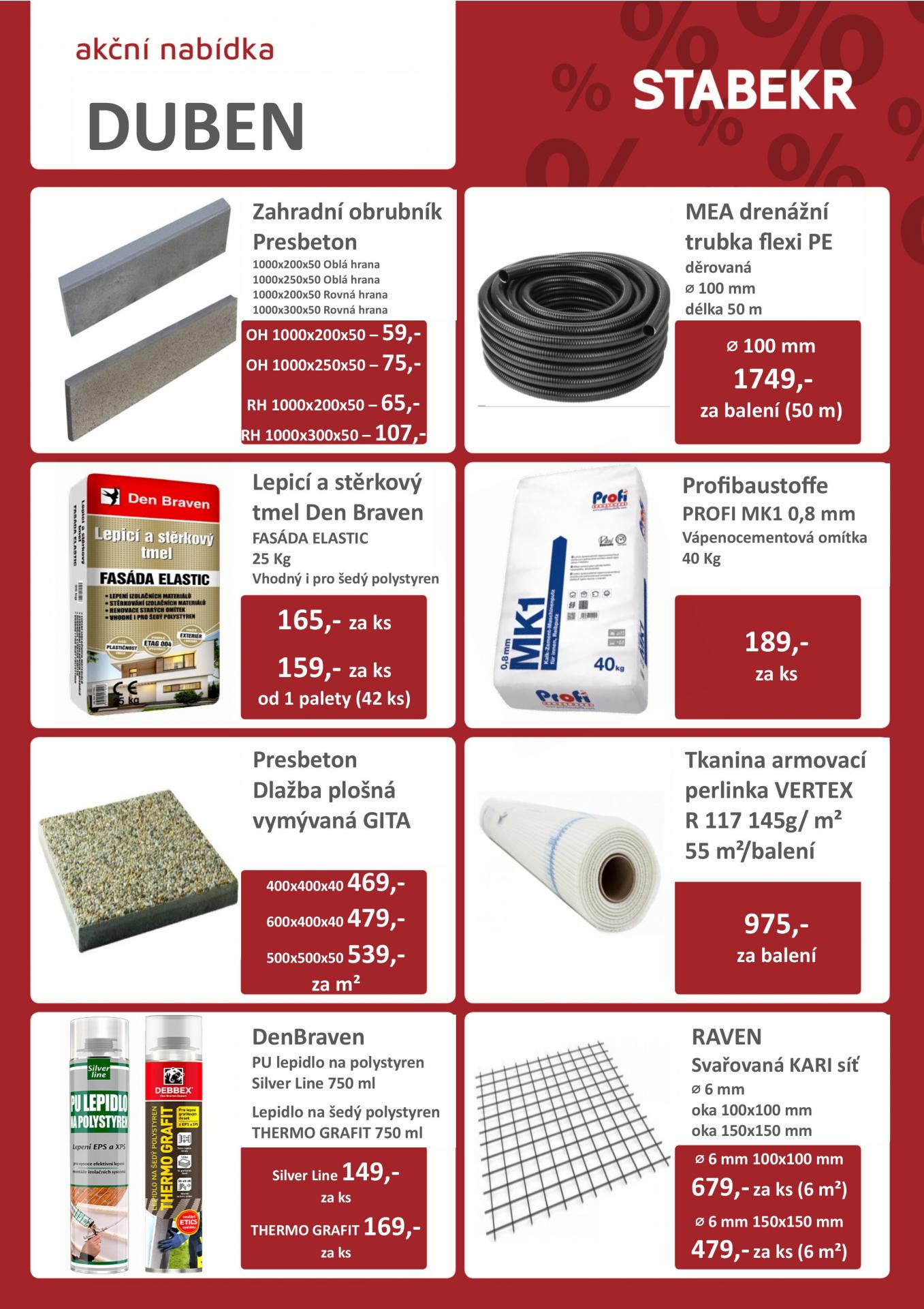 Akční nabídka stavebnin STABEKR na měsíc duben