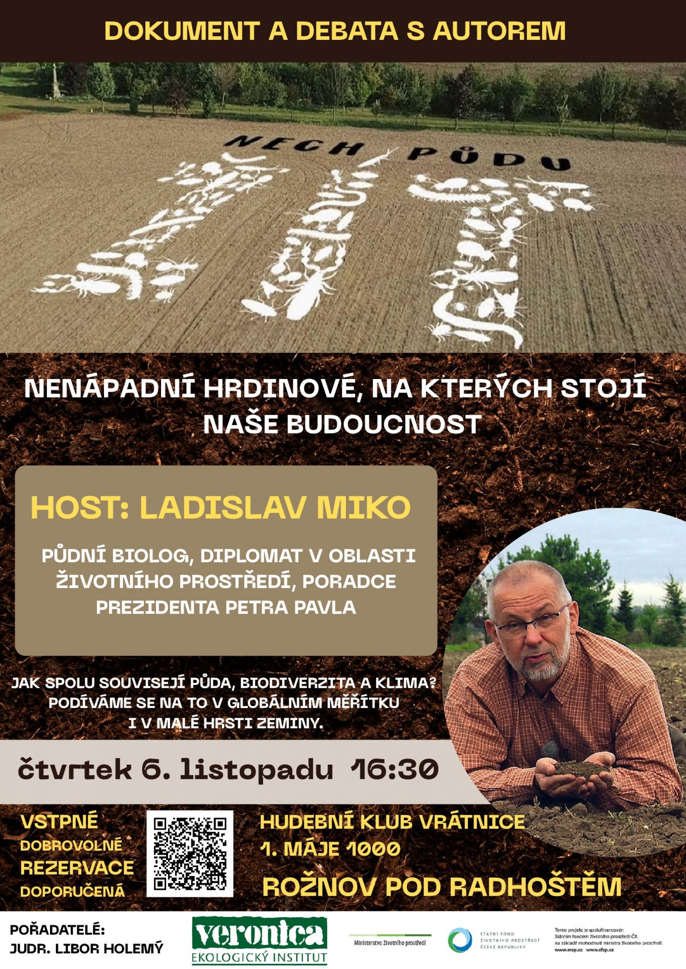 Nech půdu žít a setkání a Ladislavem Mikem se uskuteční ve čtvrtek 6. 11. 2025 v Rožnově pod Radhoštěm.