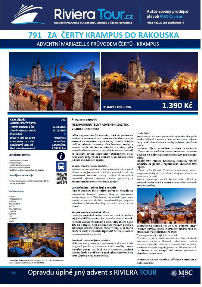 Riviera Tour pořádá 22. listopadu 2025 zájezd za čerty Krampus a svatým Mikulášem do Rakouska. Bližší informace na www.rivieratour.cz.